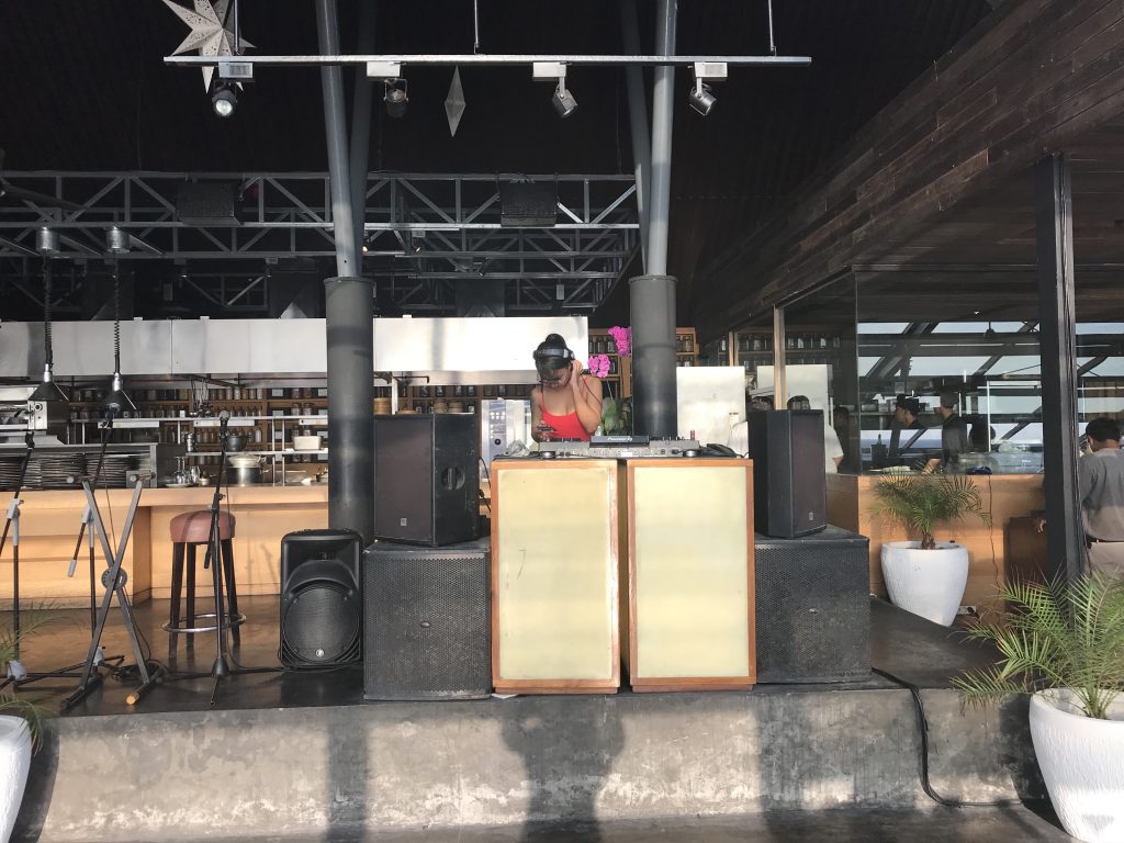 Vor der offenden Küche war ein DJ-Pult aufgebaut. Die She-DJ hat bis kurz nach dem Sonnenuntergang bekannte Lieder gemixt. Im ersten Moment denkt man „DJ während dem Abendessen?“, aber es war auf gar keinen Fall unangemessen oder aufdringlich. Die Musik wurde in einer angenehmen Lautstärke gespielt und hat die Vorfreude auf den Sonnenuntergang wunderbar getragen.