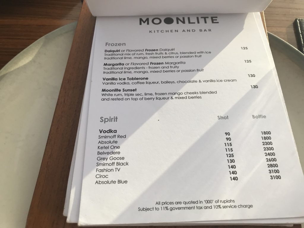 Das Dinner in der MoonLite Kitchen and Bar war definitiv eines unserer schönsten Dinner, die wir je hatten. Der Ausblick, das Essen, der Service und die Musik waren sehr stimmig. Auch die Qualität der Spisen und Getränke hat uns absolut beeindruckt. Wir werden bei unserem nächsten Bali Besuch definitv wieder einen Tisch für ein Sonnenuntergangs-Dinner in der ersten Reihe reservieren.