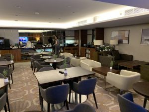 Die Lounge erstreckt sich über zwei Räume und eine riesige Terrasse. Der erste und zugleich größere Raum ist der Hauptteil der Lounge. Hier findet Ihr zahlreiche Sitzgelegenheiten. Wobei das System durchdacht ist, denn die Tische im zentralen Teil sind eher Esstische während es nach außen zu den Wänden immer bequemer wird.