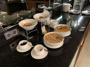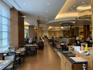 Das Frühstück konnten wir als Hilton Honors Diamond Member entweder in der Lounge oder im Hotel-Restaurant zu uns nehmen. Da im Restaurant in der Regel ein umfangreicheres Frühstücks-Büffet verfügbar ist, haben wir uns für diese Option entschieden.