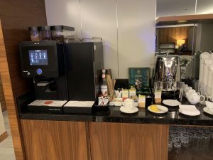 Mit Getränken konnten wir uns beim Frühstück selbst versorgen. Direkt in der Nähe unserer Tische stand ein Kaffeevollautomat, eine Auswahl an Tees sowie Saft und Wasser. Frisch gepresste Säfte wurden zusätzlich auch am Tisch serviert. Soweit das Personal entsprechend aufmerksam war.
