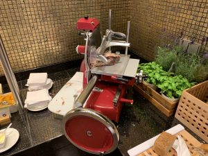 In eine separaten Ecke findet man diverse Sorten an Brot und Brötchen. Belegen könnt Ihr diese mit einer Auswahl an Wurstsorten, Käse, Fisch und Marmeladen. Schinken konnten wir uns selbst in feinen Streifen vom Stück schneiden.