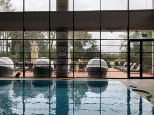 Rezeption und Umkleideräume teilt sicher Fitness-Bereich mit den Pool- und Sauna-Landschaften, welche sich auf gleicher Ebene befinden. Nach den Umkleideräumen, in denen Ihr auch Spinde und Duschen findet, kommt man zum Pool-Bereich.