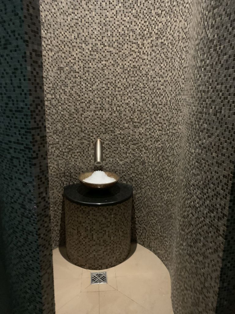Wir waren schon kurz davor wieder umzudrehen, als mir einfiel, dass es noch einen separaten Wellness-Bereich gibt, der allerdings separat berechnet wird. Zumindest soweit man keinen Hilton Honors Diamond Status hat. Daher kehrten wir zur Rezeption zurück, fragten nach Handtüchern und ließen uns den Weg zur „Level-up Zone“ zeigen, welche durch eine Tür im hinteren Bereich des Pools erreichbar ist.