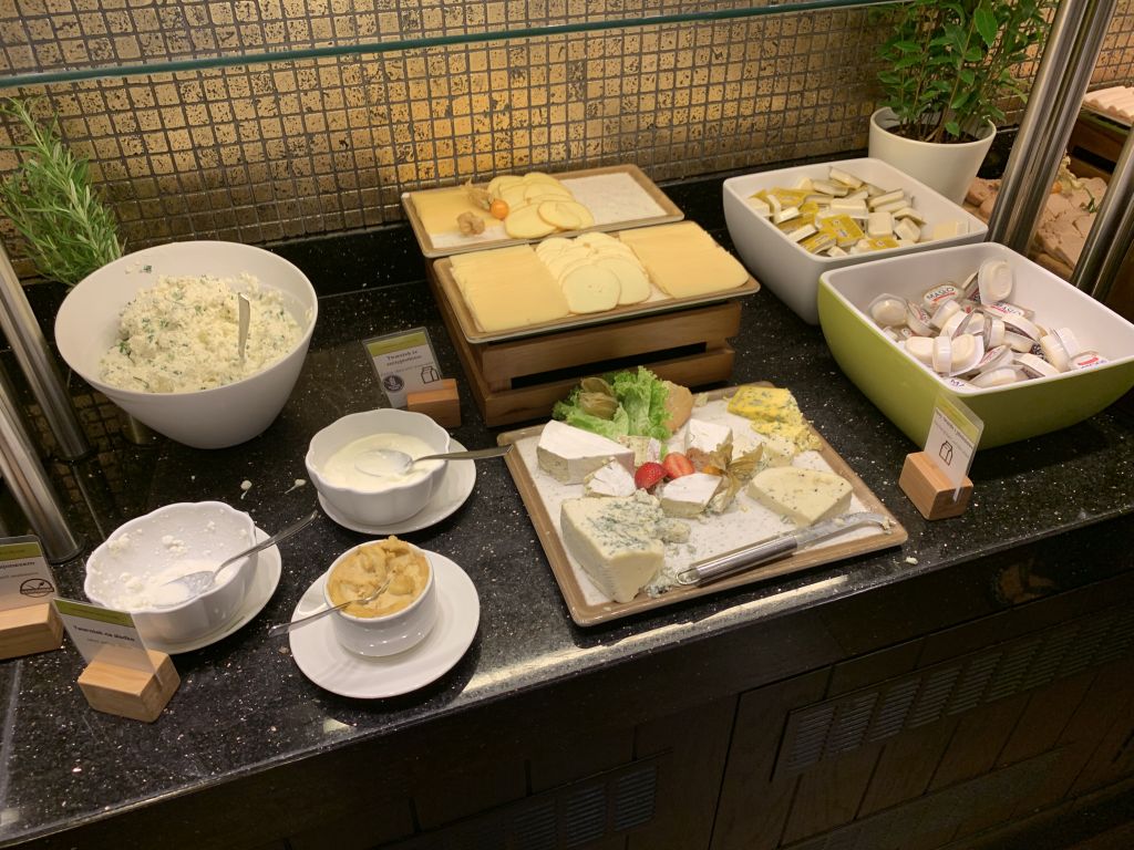In eine separaten Ecke findet man diverse Sorten an Brot und Brötchen. Belegen könnt Ihr diese mit einer Auswahl an Wurstsorten, Käse, Fisch und Marmeladen. Schinken konnten wir uns selbst in feinen Streifen vom Stück schneiden.