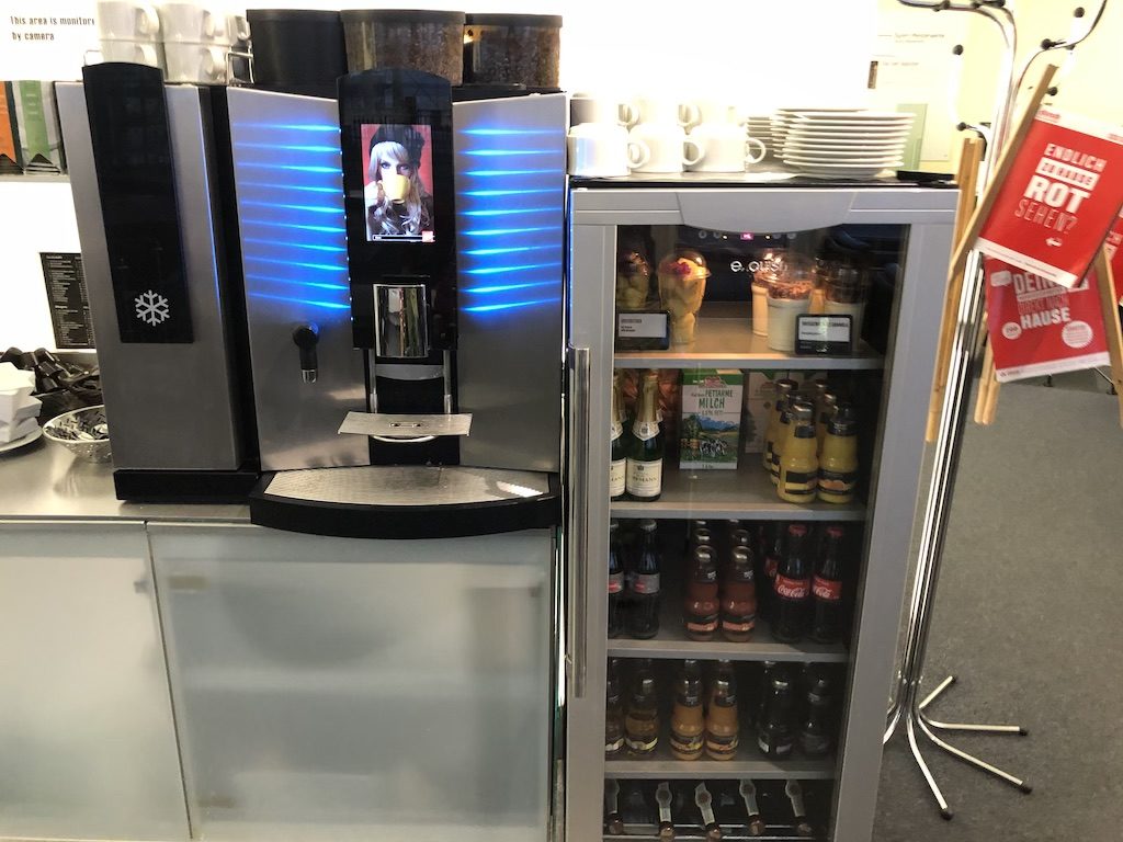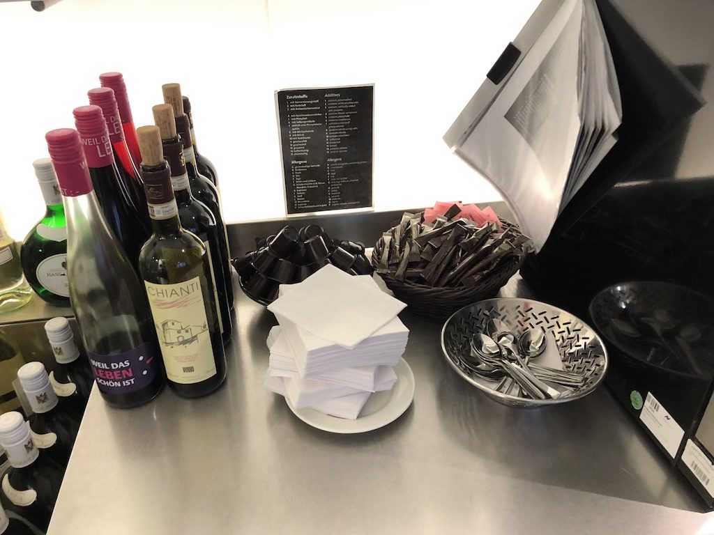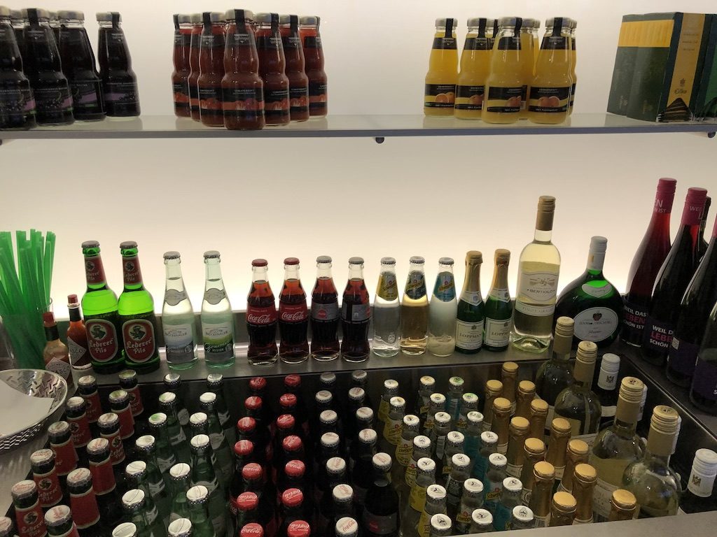 Was einen beim Essen nicht vom Hocker reißt, wird aber bei den Getränken wieder gut gemacht. Es gibt jeweils zwei verschiedene Weiß- und Rotweine, Sekt, Bier, Säfte und zahlreiche Softdrinks. Für Kaffeespezialitäten sorgt ein Vollautomat, daneben stehen mehrere Teesorten.