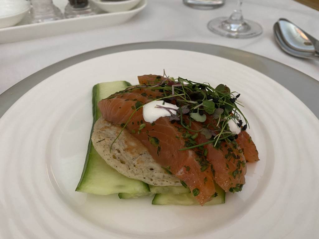 Mit dem Disclaimer nicht unser Wunschgericht zu erhalten, durften wir uns trotzdem ein Gericht aus der Speisekarte auswählen. Jetzt waren die Hummerschwänze und der geräucherte Lachs mit Kaviar vielleicht nicht die beste Wahl mit Blick auf eine mögliche Verfügbarkeit, aber Hähnchenbrust oder Kürbisravioli hatten im Gegenzug aber auch nicht den ausreichenden Coolness-Faktor.