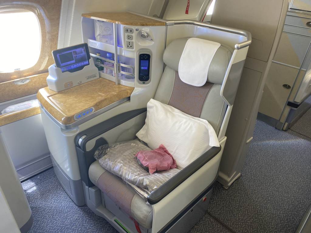 Bei der Business Class Verfügbarkeit war ich entspannter. Direkt nach der Buchung des Economy Class Tickets habe ich bei Emirates angerufen und das Upgrade bestätigen lassen. Das kostetet für die Erwachsenen jeweils 30.000 und für die Kinder je 3.000 Skywards Meilen. So waren wir schon mal sicher in der Business Class.
