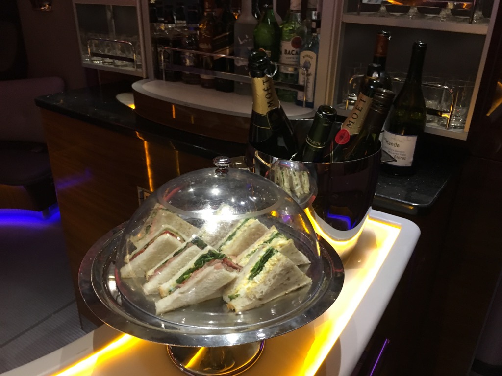 Hier kann man sich während des gesamten Fluges ein wenig die Beine vertreten, sich einen Drink mixen lassen oder auch einen Snack einnehmen. Grundsätzlich ist dies ein sehr beliebter Bereich im Emirates 380 und man kann hier sicherlich viel Spaß haben.