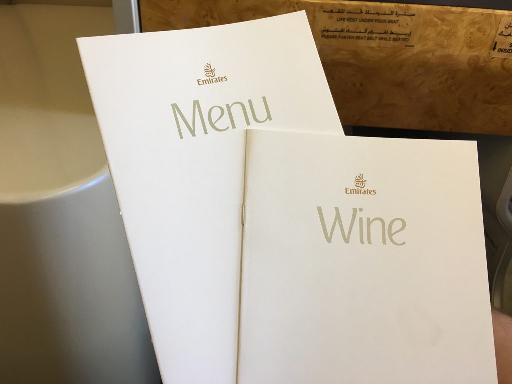 Die Speise- und Weinkarte in der Emirates Business Class war auf dem Flug von Frankfurt nach Dubai recht umfangreich.