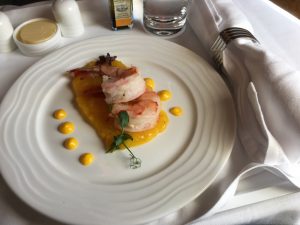 Die Garnelen auf dem Mango Salat als Vorspeise waren wirklich fantastisch und für mich bereits das Highlight des Essens. Auch der Salat und das Brötchen waren absolut in Ordnung. Was mich allerdings etwas irritiert hat war, dass kein Brotkorb gereicht wurde, sondern einfach bereits ein Brötchen auf dem Teller lag, als es serviert wurde. Mir war als wäre dies einmal anderes gewesen.