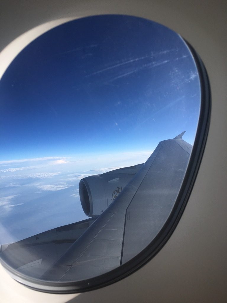 Irgendwo über der Osttürkei ist dann auch langsam die Sonne untergegangen und die Kabine wurde passend etwas abgedunkelt. Viele Passagiere haben die Zeit zum Schlafen, Film Schauen oder wie ich, zum Arbeiten genutzt.