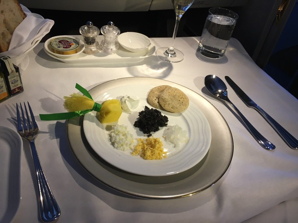 Ich habe mir auch auf diesem Flug, ganz First Class like, den Kaviar Service nicht nehmen lassen, welcher wieder sehr gut und auch schön angerichtet war.