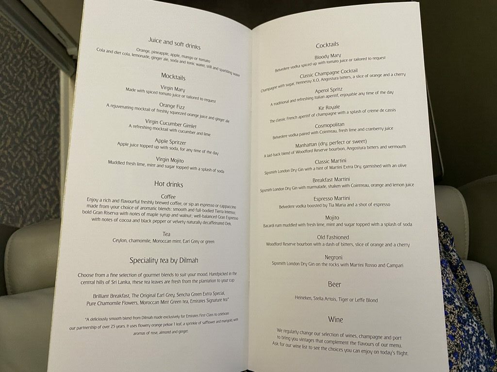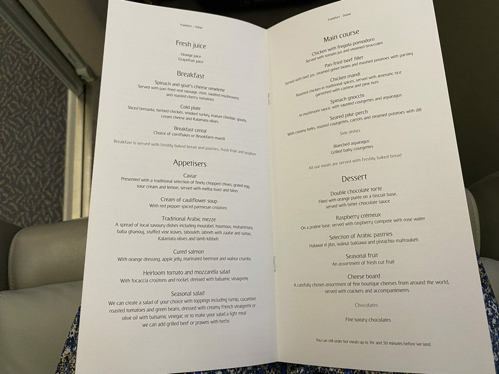 Emirates First Class im Airbus A380 von Frankfurt nach Dubai | Service und Catering