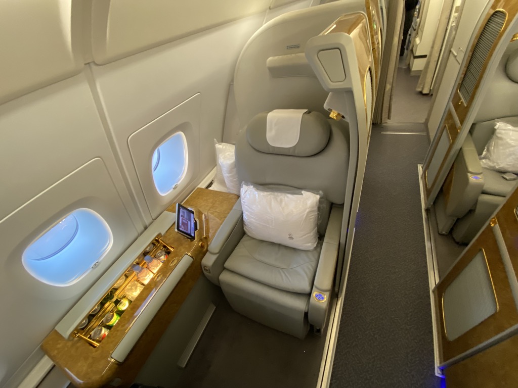 Emirates First Class im Airbus A380 von Frankfurt nach Dubai | Kabine und Sitz