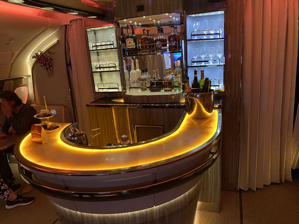 Emirates First Class im Airbus A380 von Frankfurt nach Dubai | Bar