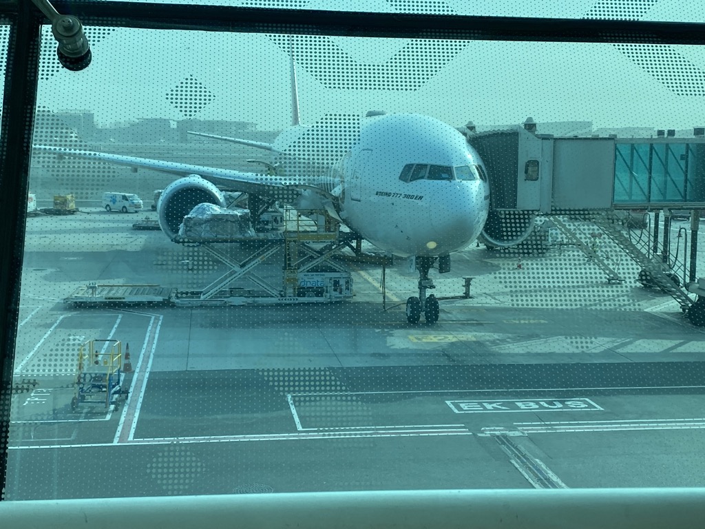 Nach einem kurzen Aufenthalt in der Übergangs-Lounge von Emirates liefen wir noch einige Meter zum Gate. Hier wurden vor dem eigentlichen Boarding erneut alle Dokumente, also Pass, Bordkarte, Impf- / Testnachweis und die Einreiseanmeldung kontrolliert. Meiner Meinung nach eher nicht gelungen, da hier großes Gedränge und Wartezeiten entstanden. Abstand wurde quasi nicht gehalten, eine Priority Schlange gab es, die aber von allen genutzt wurde und die Masken wurden auch überall getragen, nur leider oft nicht über Mund UND Nase.