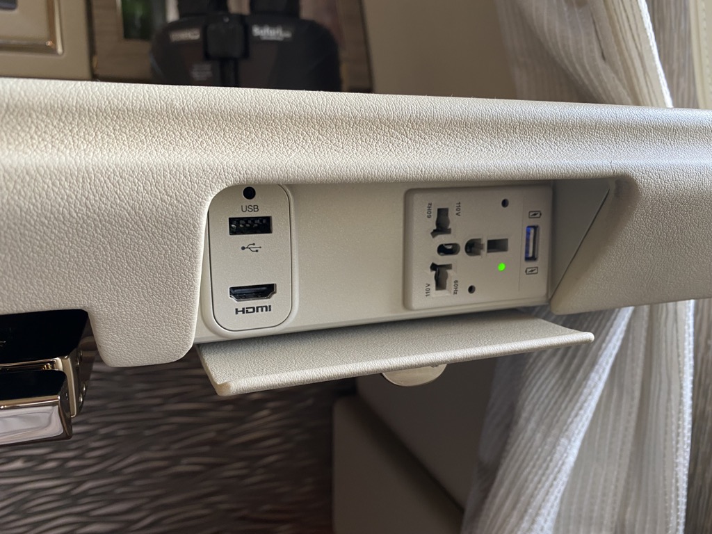 Nichtsdestotrotz sind mir einige Dinge aufgefallen. Das Handgepäckproblem, das ich beim Hinflug im Bettmodus des Sitzes hatte, gab es hier aufgrund des größeren Platzangebotes nicht. Das heißt, der Sitz hat sich diesmal nicht am Koffer verklemmt und konnte problemlos bedient werden. Zum Schlafen oder Ruhen fand ich es extrem angenehm, dass man die Suite komplett verschließen kann – man hat wirklich viel Privatsphäre.