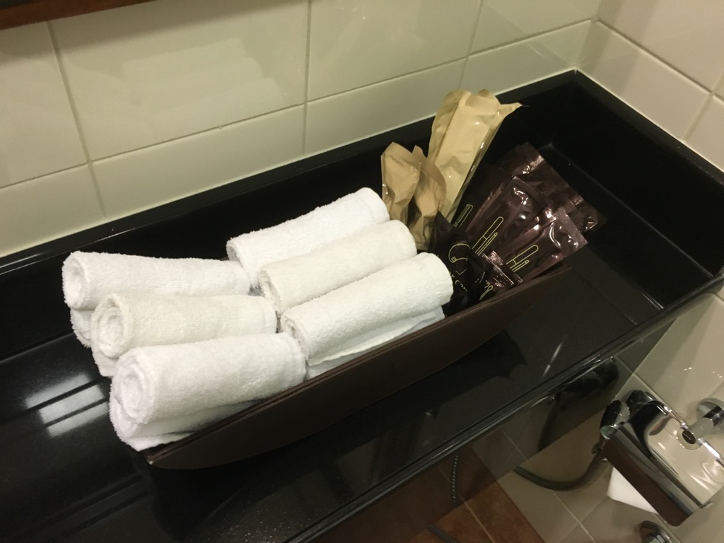 Neben den eigenen, sanitären Einrichtungen in der Emirates Lounge Brisbane, gibt es hier auch Duschen für die Gäste. Ganz Emirates typisch liegen auf den Toiletten auch Amenitys wie Rasiersets und Zahnbürsten bereit.