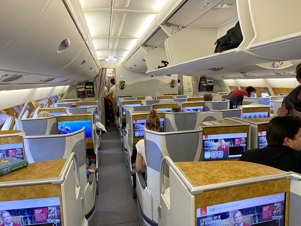 Emirates (neue) Business Class Airbus A380 Dubai nach München | Flugzeug und Kabine
