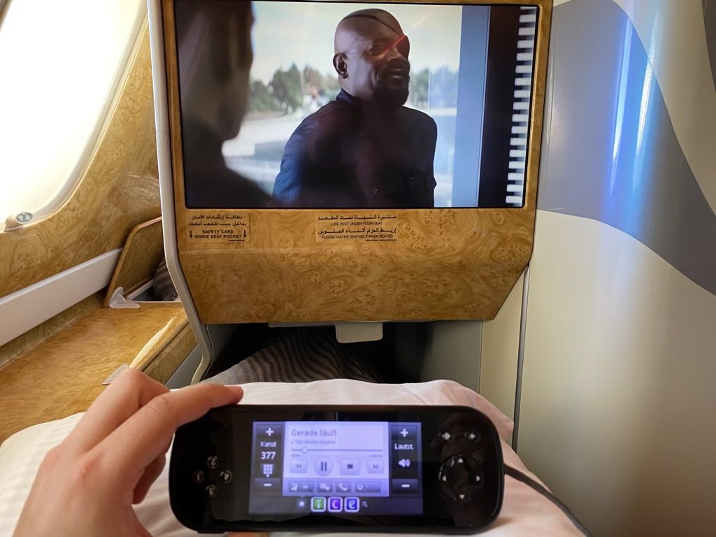 Es scheint, als wäre ich nicht der einzige, welcher die Position des Kopfhöreranschlusses falsch platziert fand, denn in der neuen Business-Class ist diese direkt neben einem und nicht am anderen Ende des Sitzes. Somit konnte ich auch meine eigenen Bose Kopfhörer verwenden, welche für mich ein deutlich besseres Klangerlebnis bieten als jene an Bord, welche dennoch ein super Job erledigen.