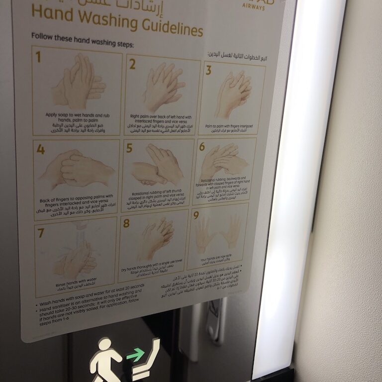 Es gibt zwei Waschräume für die maximal 28 Passagiere, darin findet man jetzt auch Desinfektionsmittel und eine Anweisung zum richtigen Händewaschen.