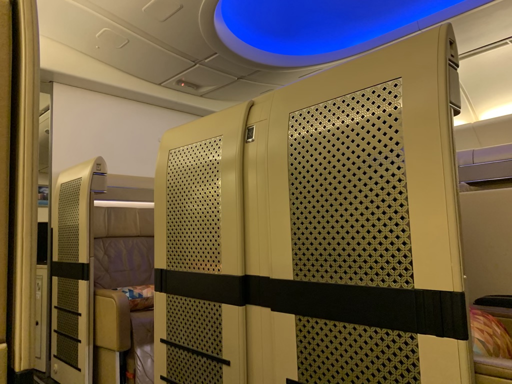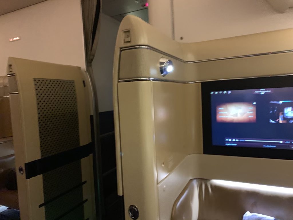 Der Sitz selbst war schön gestaltet und wirkte auf mich durchdacht, mit einigen sehr sinnig angebrachten Elementen. So gab es am Sitz eine Reihe von Leselichtern, mit welchen man die Suite sehr gut ausleuchten konnte. Auch das Frischluftventil direkt in der Suitewand hat mir gut gefallen, da man so die Suite zum Schlafen etwas herunterkühlen konnte.