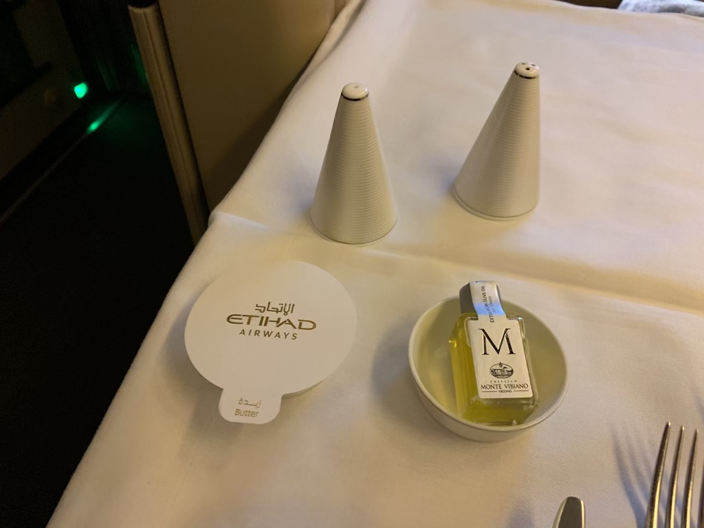 Das Essen auf diesem Flug war nur mittelmäßig. Ich habe zwar auch schon schlechter in der First Class gegessen, aber meistens ist das Essen doch deutlich besser als das, was Etihad Airways aus Singapur serviert.