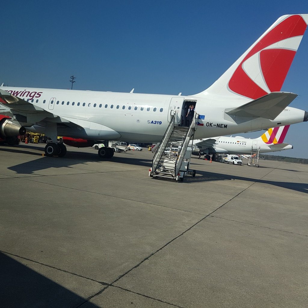 Der Flieger war ein A319 der CSA, welche mit drei Maschinen bei Eurowings in Stuttgart im Wetlease aushilft. Die Crew empfing die Gäste freundlich und half proaktiv beim Handgepäckverstauen. Die Sicherheitsinstruktionen kamen von kleinen Deckenmonitoren, über diese war später während des Fluges die Flugroute angezeigt worden.