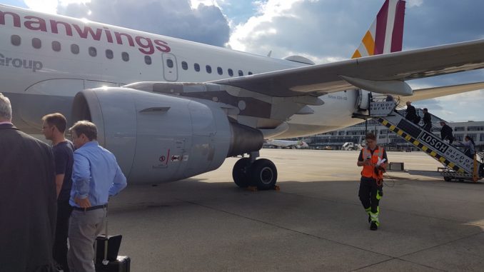 Das Boarding begann pünktlich und zu meiner Freude gab es ein Busgate, so konnte ich schöne Bilder knipsen. Ihr wundert Euch vielleicht warum auf dem Flugzeug „Germanwings“ steht. Eurowings hat in Ihrer Eurowings Group insgesamt sieben verschiedene Airlines und einige verschiedene Flugzeuge, wie auch dieses. Der Flug war doch recht voll, weshalb es aus Rücksichtnahme keine Kabinenbilder gibt. Mein Sitzplatz war 9A und hatte „Extra Legroom“, ich war mit meinen knapp 1,85m sehr zufrieden.