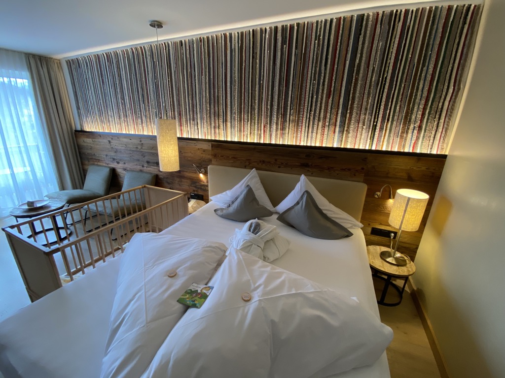 Angekommen in der gebuchten Junior Suite stellten wir fest, dass man mit zwei Reisebetten und einem Zwillingskinderwagen nur noch wenige Zentimeter findet, um den Koffer zu öffnen oder sich zu angenehm bewegen. Sicher ist hier unsere Situation speziell. Mit einem Kind ist dieses Zimmer sicher absolut in Ordnung. Wie bereits erwähnt, fragten wir nach einem Upgrade. Wir hatten Glück. Wenige Minuten zuvor war ein größeres Zimmer, eine Family Suite, frei geworden. Der Aufpreis von 28€ pro Tag war es uns wert. Gerne möchten wir Euch einen Einblick in beide Zimmerkategorien bieten.
