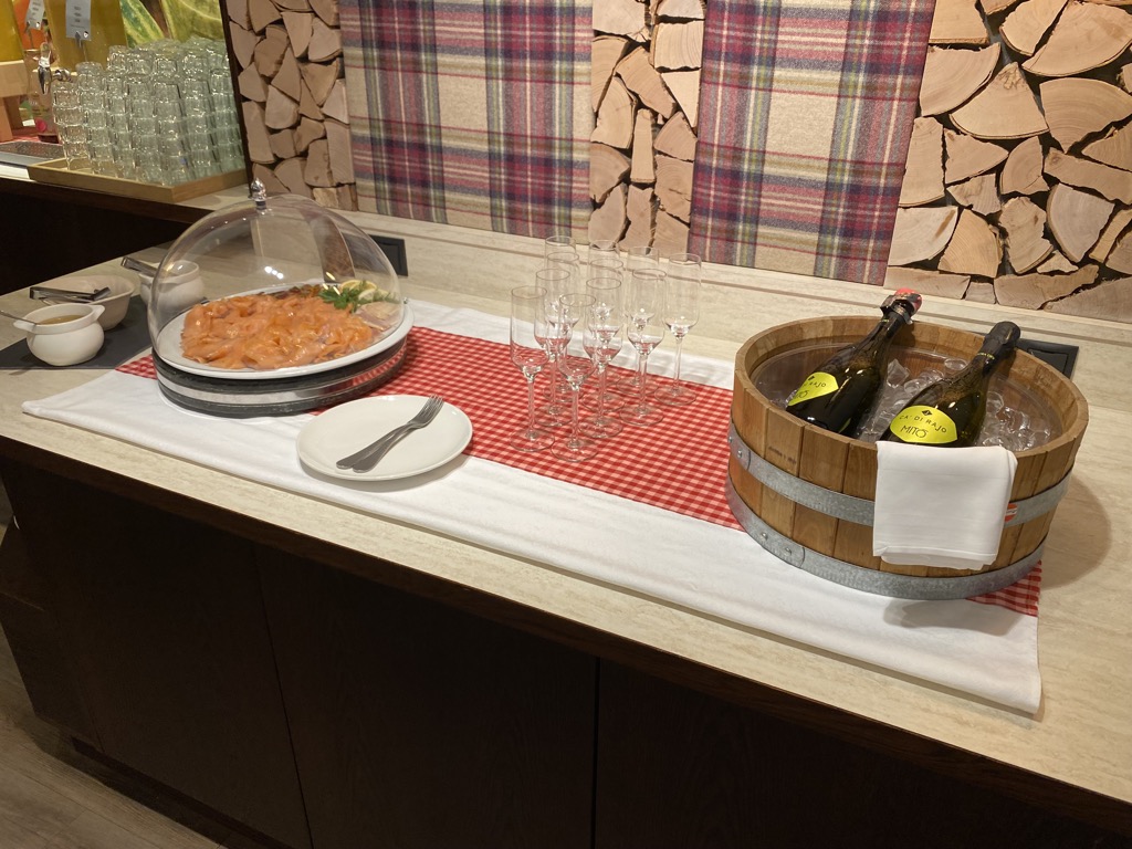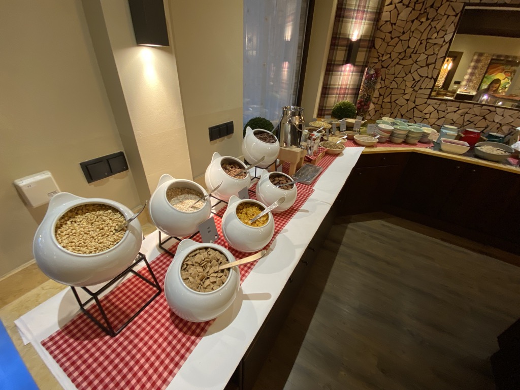 Im Preis des Mia Alpina Zillertal ist auch eine Vollpension erhalten, die aus Frühstück, Mittagstisch, Nachmittagsjause und einem umfangreichen Abendessen besteht. Der Großteil aller Speisen wird in Buffetform angeboten, die Hauptspeisen am Abend und die Extras am Morgen, wie Eierspeisen, Pancakes o.ä. wurden an den Tisch gebracht.