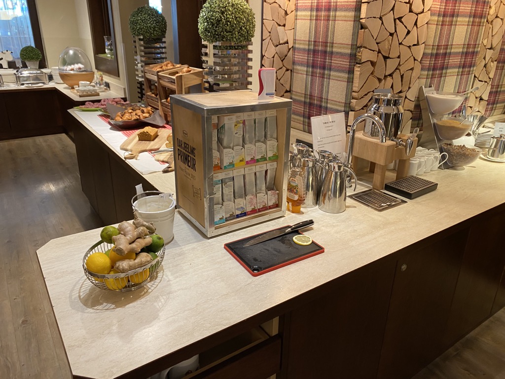 Hier gibt es neben einem großen Ruhebereich mit tollen Blick einen Bereich, in dem man sich Tee kochen und an Zeitschriften und Wasser bedienen kann. Von hier aus gelangt man auch in verschiedene Saunen, zu den Duschen und in ein Dampfbad. Ich war gegen 11 Uhr im Wellnessbereich und er war leer. Ich war die einzige anwesende Person, was mich sehr überrascht hat.