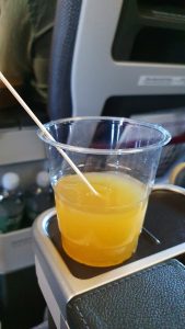 Zwischendurch gab es noch einen warmen Cookie, der für 4Y inzwischen zum Markenzeichen wurde. Während des Nachtflugs gab es den üblichen „Nachtgetränkeservice“ mit Wasser und Orangensaft aus dem Plastikbecher, sowie bereitgestellte Getränke in der Galley zum Selberholen.