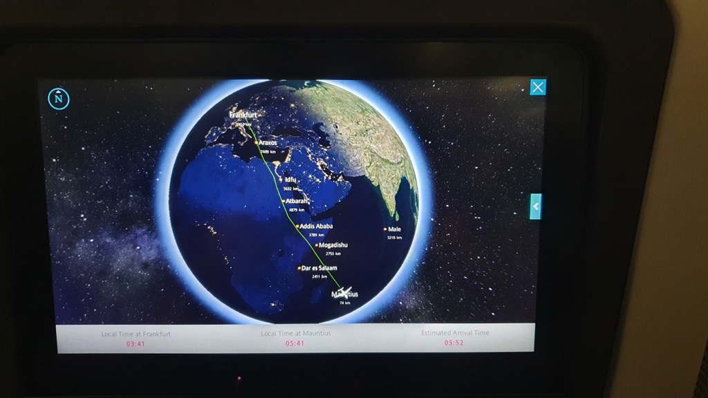Geflogen sind wir mit Eurowings Discover 4Y 152 von Frankfurt nach Mauritius, Abflug 16:40 und Ankunft 5:55 Uhr Ortszeit am Folgetag. Der Rückflug war 4Y 153, Abflug 7:45 Uhr mit Ankunft 17:45 am selben Tag.