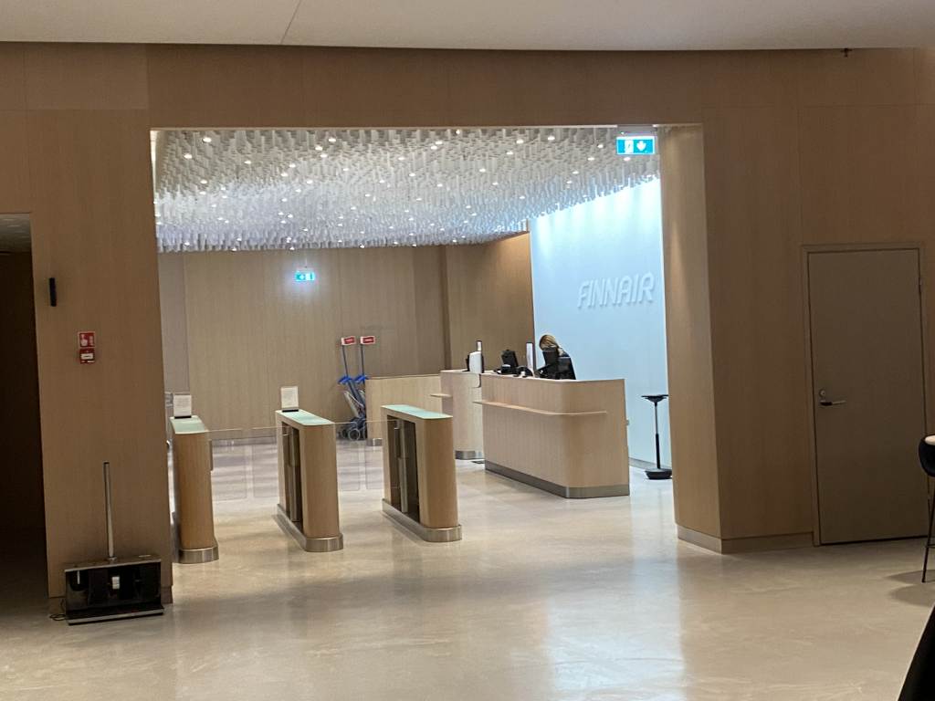 Die Finnair Business Lounge beginnt mit dem gemeinsam mit dem Platinum Wing genutzten Empfangsbereich. Während unseres Aufenthalts war der Platinum Wing allerdings noch wenige Tage lang geschlossen.