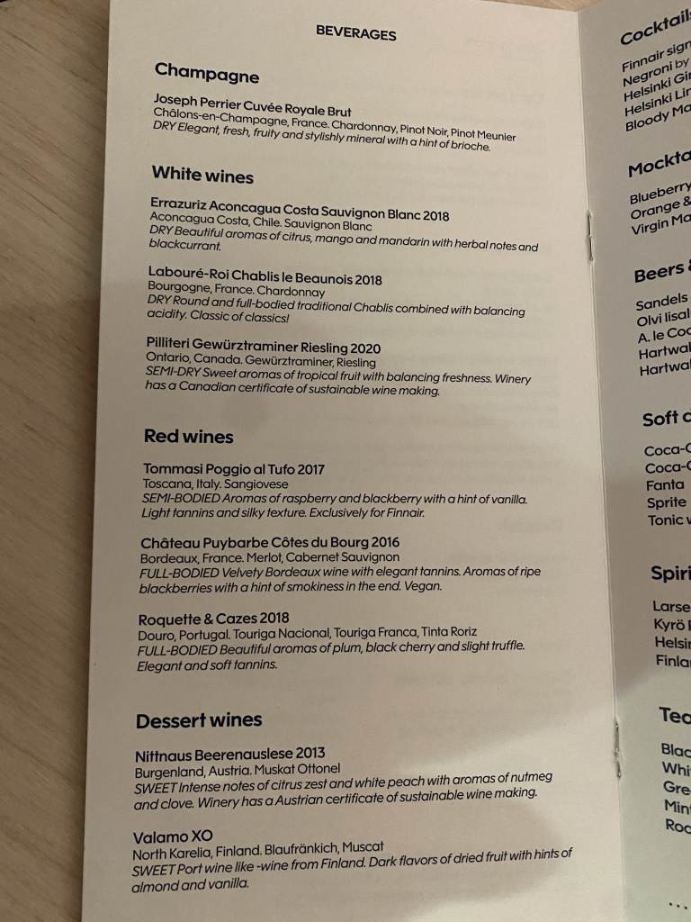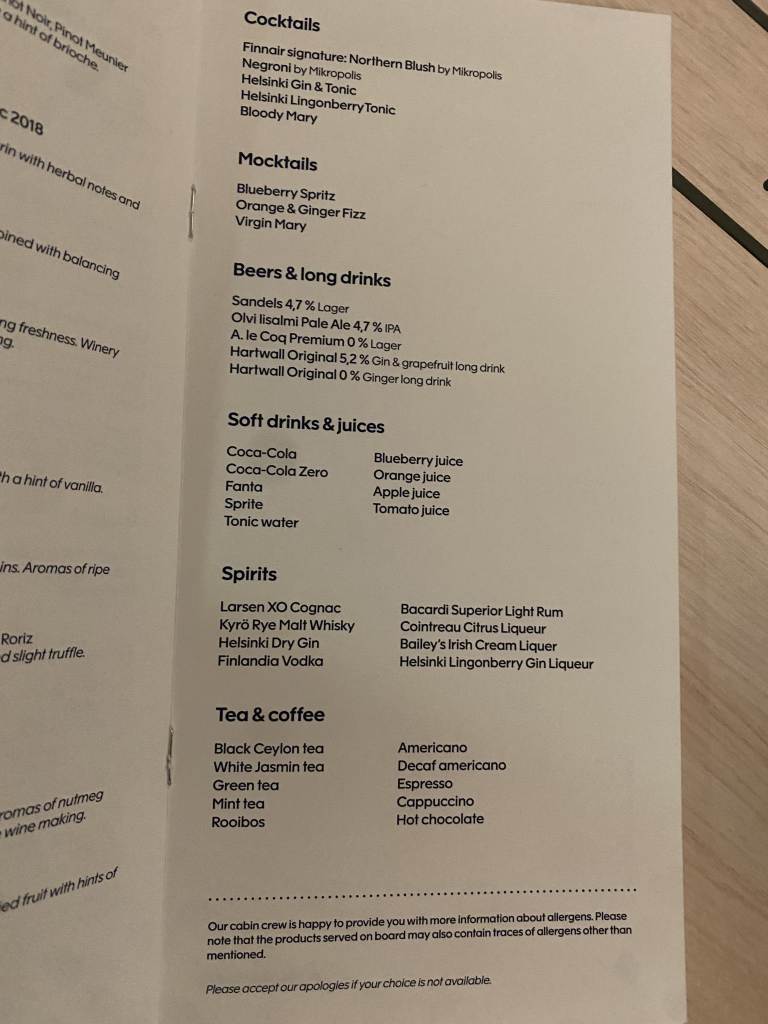 Dass Finnair auf die Auswahl alkoholische Getränke sehr viel Wert legt, merkt man dann auch an den Spirituosen:
