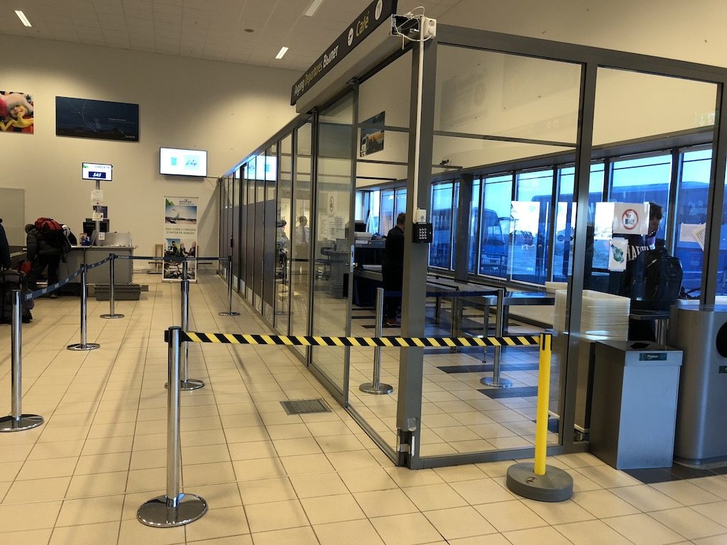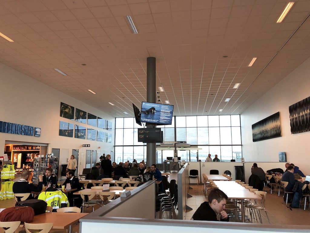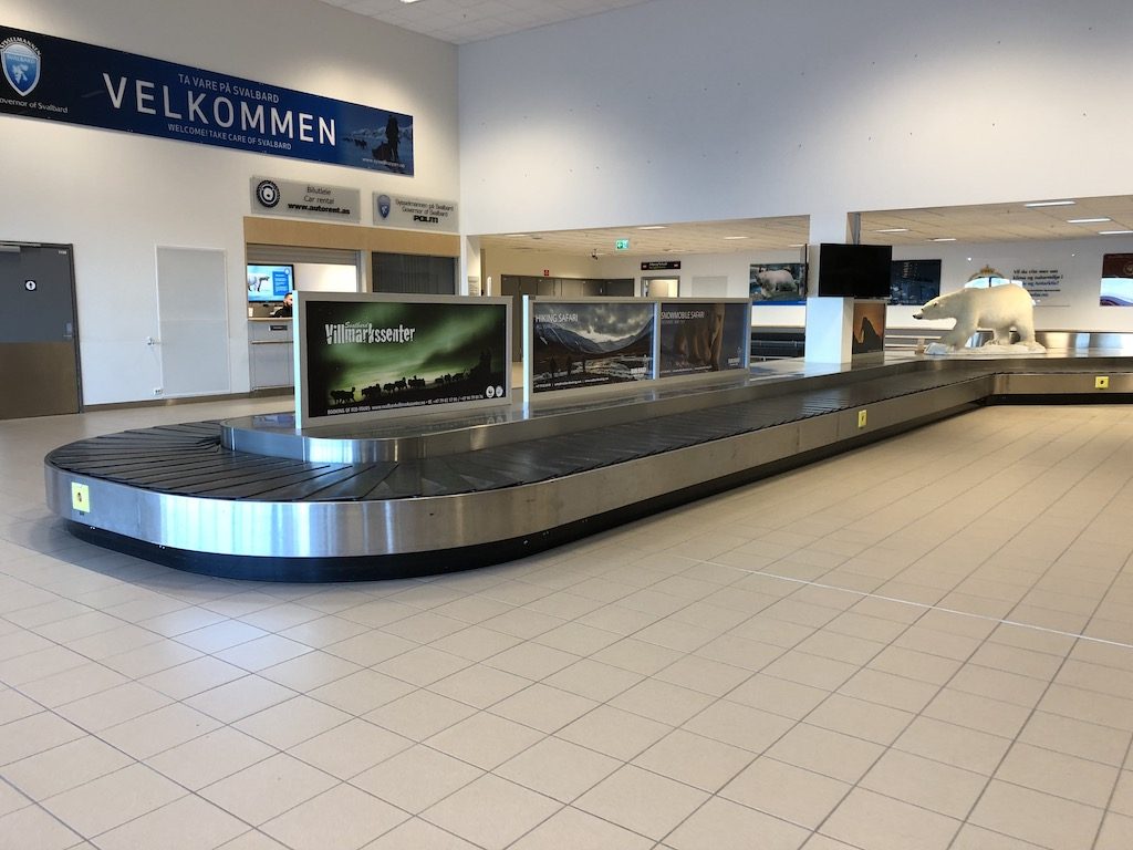 In der Ankunftshalle befindet sich ein mit einem ausgestopften Eisbären dekoriertes Kofferband. Direkt daneben befindet sich ein Service- und ein Ticketschalter. Und direkt daneben – keine 15 Meter vom Kofferband entfernt befinden sich vier Check-In Schalter mit einer einzelnen Sicherheitskontrolle gleich daneben.