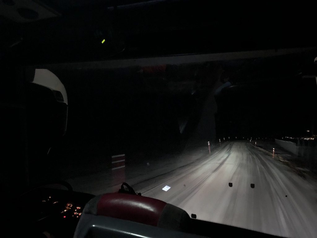 Der Flughafen betreibt einige Busse, die Flybussen, welche pünktlich zur Ankunft die Passagiere direkt in die verschiedenen Hotels bringen. Die Optionen zur Unterkunft beschreibe ich in einem weiteren Artikel. Die Busse selbst verkaufen Return-Tickets für rund 15 Euro pro Passagier – kein Schnäppchen, aber wer das erwartet, hat auf Spitzbergen leider nichts verloren, denn hier ist alles sehr teuer. Ein Taxi dürfte mit rund 20 bis 25 Euro zu Buche schlagen, wenn eines am Terminal steht. Wir selbst entschieden uns für den Flybussen, und waren keine 15 Minuten später vor unserem Hotel. Am Tag des Rückfluges holte uns der Bus exakt zwei Stunden vor Abflug wieder am Hotel ab und brachte uns mit zahlreichen anderen Passagieren des Fluges zurück nach Tromsø, wo erneut eine Passkontrolle zur Einreise mit Zolldurchgang auf uns wartete.