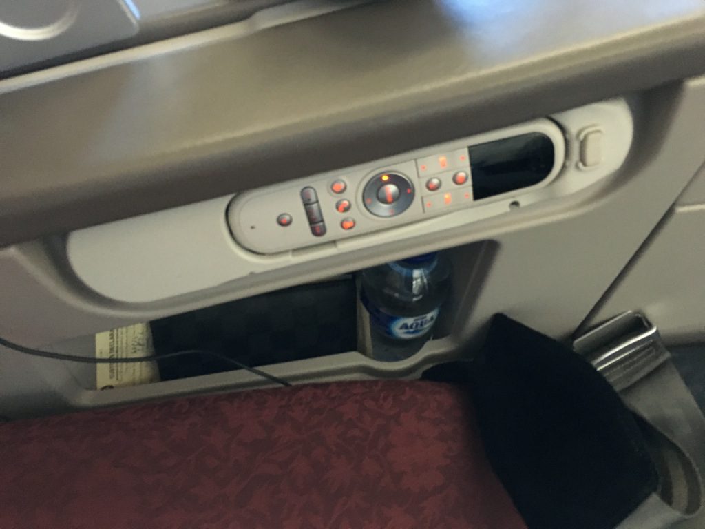 Der Sitz bot einige Ablagefächer, wie zum Beispiel ein Schuhfach oder einem Zeitungsfach, welches für die Passagiere gedacht war. Auch unter dem Controller des IFE war noch eine weitere Ablage, in welcher man wunderbar seinen Pass und Geldbeutel unterbringen konnte. Auch eine Wasserflasche war an jedem Sitz bereits beim Einsteigen vorhanden.