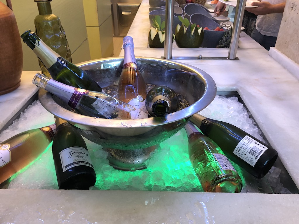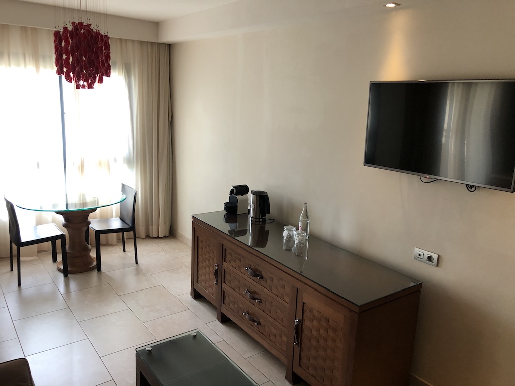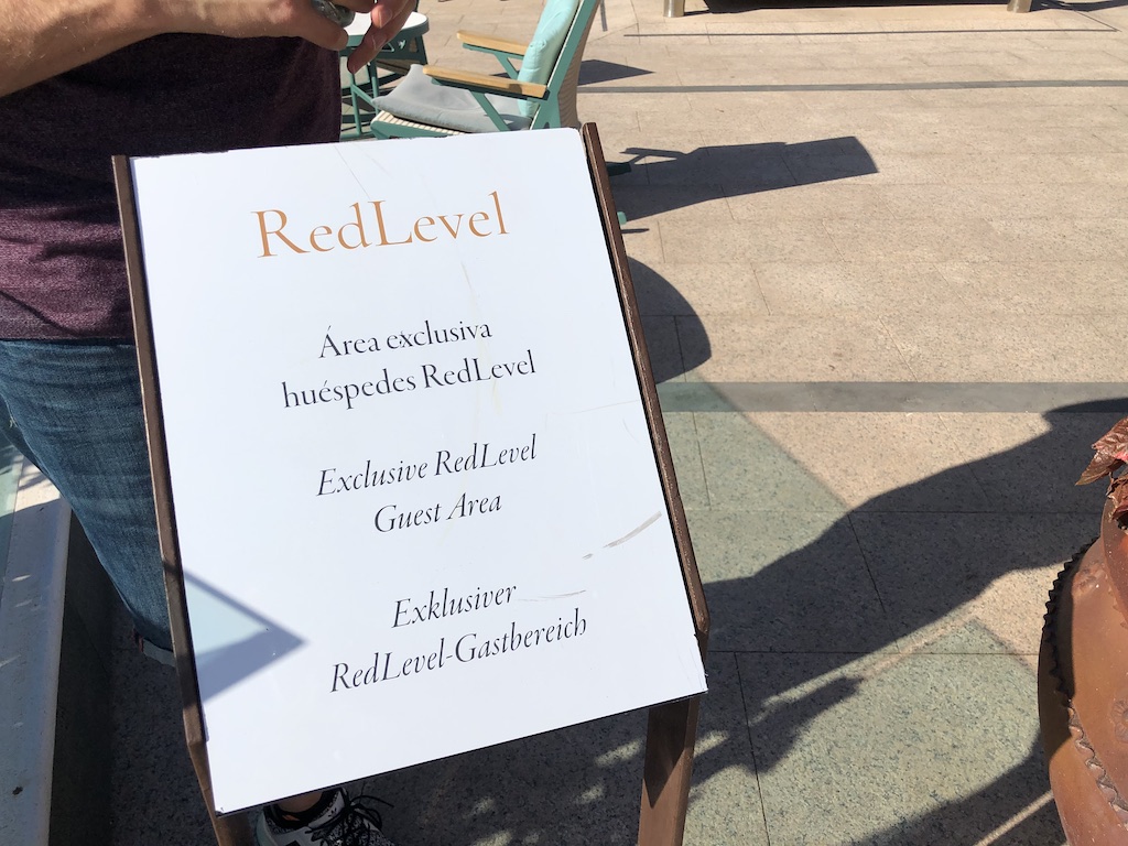Der RedLevel-Bereich im Meliá war abgetrennt vom Haupthaus, Zutritt hatten nur Erwachsene. Eine Lounge gibt es in diesem Hotel nicht, es gab aber eine Ecke mit kostenfreiem Wasser, Kaffee, Tee und Kuchen am Mittag.