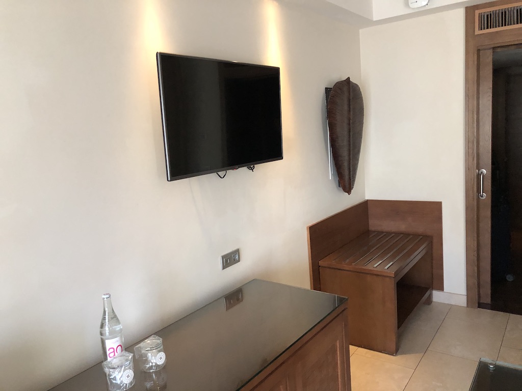 Die Einrichtung ist relativ modern. Im Zimmer sind Espressomaschine und Kühlschrank, Wasser wurde täglich kostenfrei gebracht.