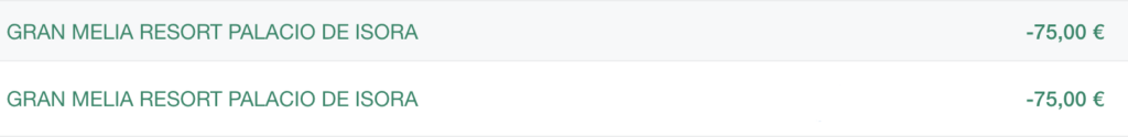 Die Platinum Karte von AMEX bescherte uns einen weiteren Vorteil. Eines der aktuellen Offer sieht eine Gutschrift von 75€ vor, sobald man 300€ bei Meliá ausgibt. Das Angebot galt auch für die Partnerkarte und somit konnten wir doppelt davon profitieren!