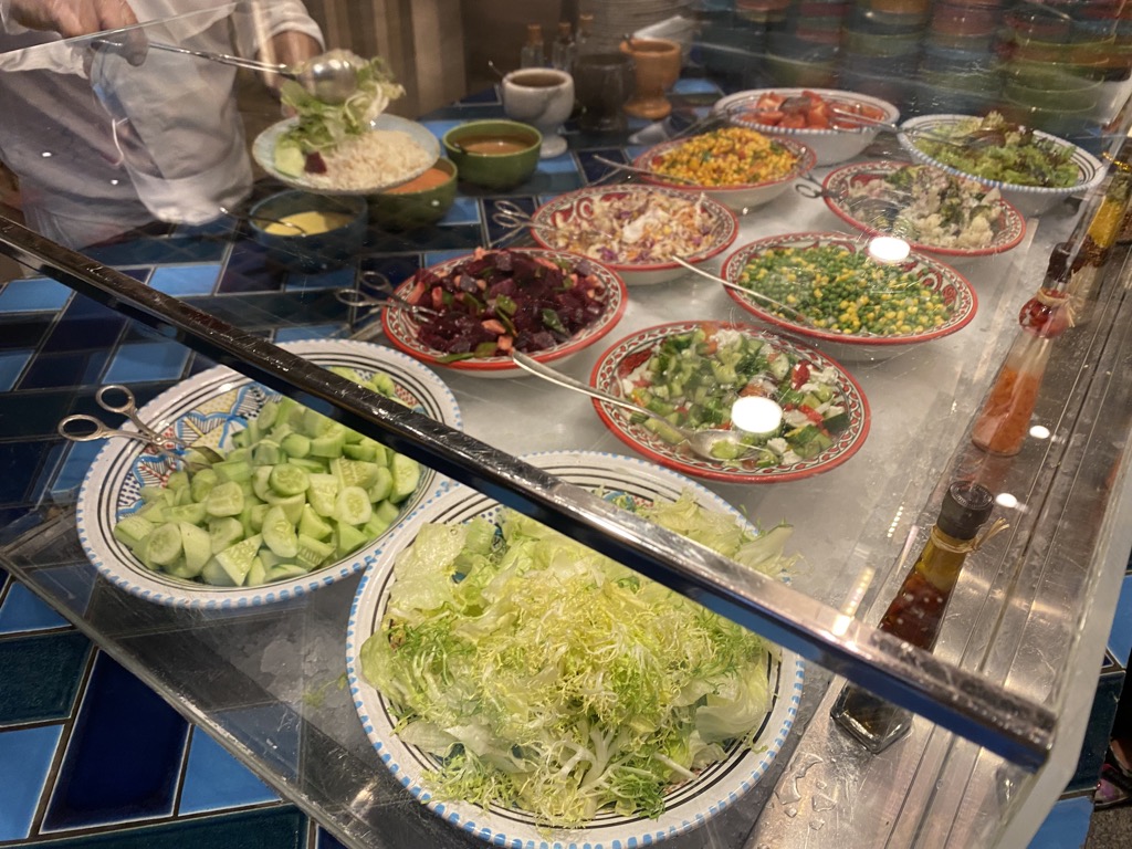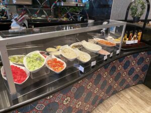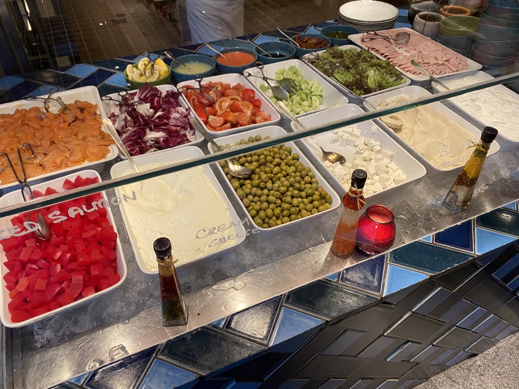 Alle weiteren Mahlzeiten haben wir im Market Café eingenommen – hier ist definitiv zu empfehlen nicht zu den Rush Hour Zeiten zu kommen, sonst muss man sich auf Wartezeit vor dem Restaurant und am Buffet und keinerlei Auswahl bei den Sitzplätzen einstellen. Insgesamt kann man das Angebot zum Frühstück und Abendessen im Market Café als sehr umfangreich, abwechslungsreich und frisch beschreiben. Es war wirklich für jeden Geschmack und jede Kultur etwas dabei, teilweise wurden Speisen wie Pancakes, Eierspeisen, Falaffel u.ä von Köchen frisch zubereitet – bei dem Rest konnte man sich mehr oder weniger am Buffet bedienen. Mehr oder weniger, da die Speisen aufgrund von Corona ausgegeben wurden, damit die Hygieneregeln eingehalten werden. Das gehört in der heutigen Zeit aber einfach dazu und hat uns keineswegs gestört. Am Besten macht Ihr Euch von dem umfangreichen Angebot selbst ein Bild: