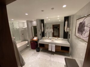 Gebucht haben wir online ein Standardzimmer über Hyatt.com für ca. 90€ pro Nacht. Durch Christophs Globalist Status erhielten wir beim Check-In ein Upgrade auf eine Grand Suite – solche Vorteile sind wirklich Gold wert, deshalb empfehlen wir immer in einer oder mehreren Ketten so oft zu übernachten, bis man einen Status erreicht.