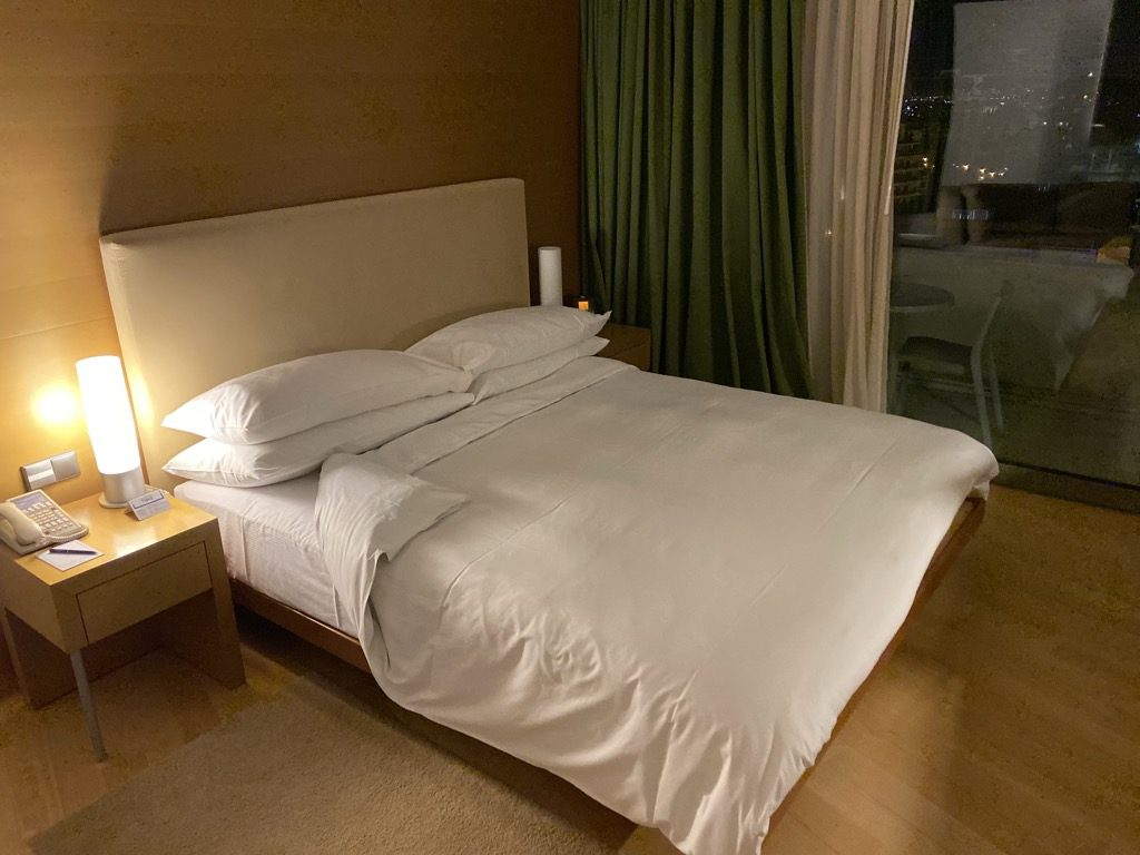 Die erste Station unserer Reise war das Hilton Athen. Der Flug aus Frankfurt startete planmäßig, aber recht spät am Tag. Entsprechend kamen wir um kurz nach ein Uhr nachts im Hilton Athen an. Nach einem angenehmen Flug in der Lufthansa Business Class wollten wir zügig aufs Zimmer um zu schlafen. Der Weiterflug sollte am nächsten Tag in der Mittagszeit nach Zürich starten.