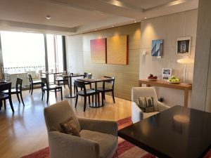 Auch der Executive Lounge haben wir einen ganz kurzen Besuch abgestattet. Sie befindet sich im obersten Stockwerk und ist mit verschiedenen Couchmöbeln ausgestattet. Auch hier war ein kleines Frühstücksbuffet aufgebaut.