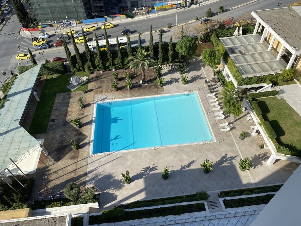 Das Hilton Athen hat natürlich auch einen Pool und ein Gym. Das Gymnasium haben wir aufgrund des kurzen Aufenthalts leider nicht besucht und können daher nichts darüber sagen. Der Pool hat eine recht ordentliche Größe für ein Stadthotel Auch hier könnte man an der ein oder anderen Stelle Renovierungsarbeiten durchführen. Ebenso wie das Zimmer war der Pool etwas in die Jahre gekommen aber tadellos sauber.