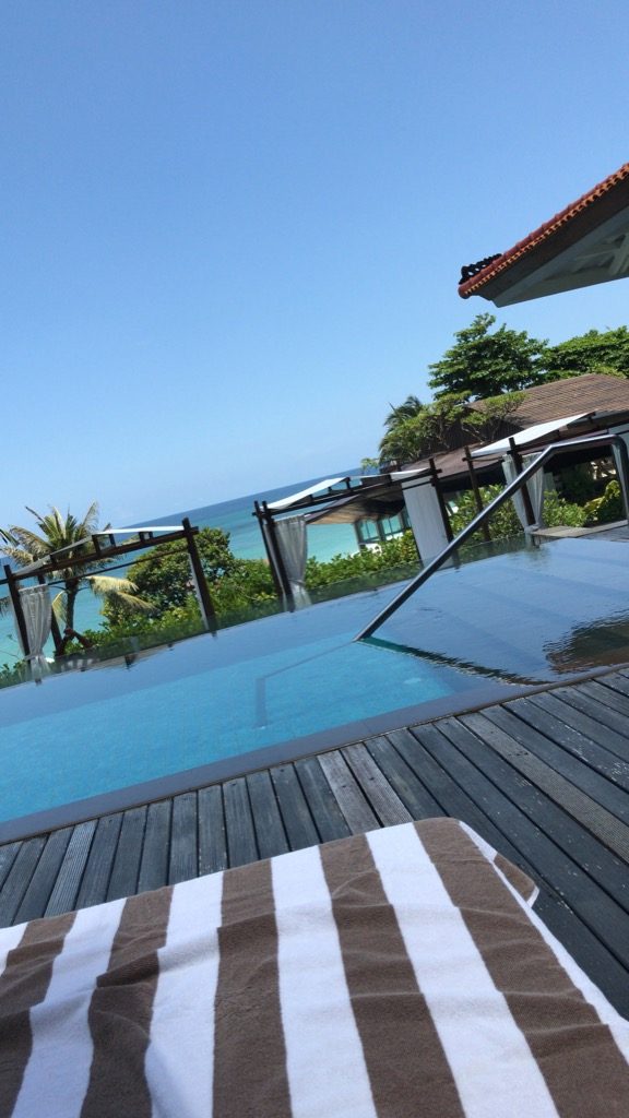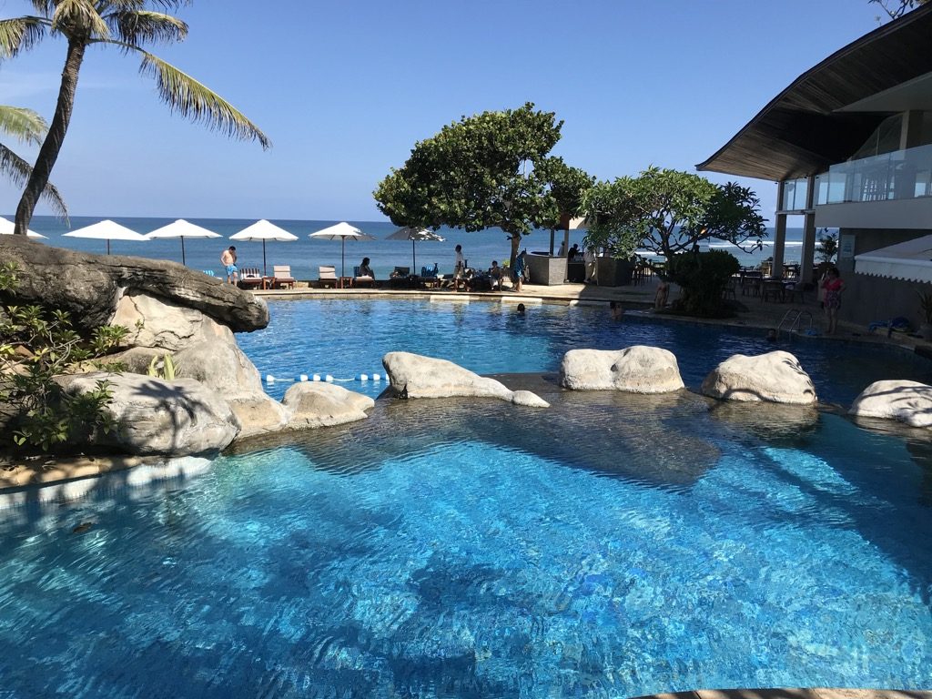 Das Hilton Bali verfügte neben dem Loungepool noch über mehrere andere Pools, inkl. einer Wasserrutsche, Basketballkörben und Wasserballtoren. Wir waren auch unten an den anderen Pools, allerdings waren sie uns zu voll. Auch unsere Liegen am Strand wurden, als wir mal zehn Minuten im Meer waren, trotz privater Gegenstände von netten asiatischen Gästen des Hotels geräumt und für sich beschlagnahmt. Eine Entschuldigung gab es nicht.
