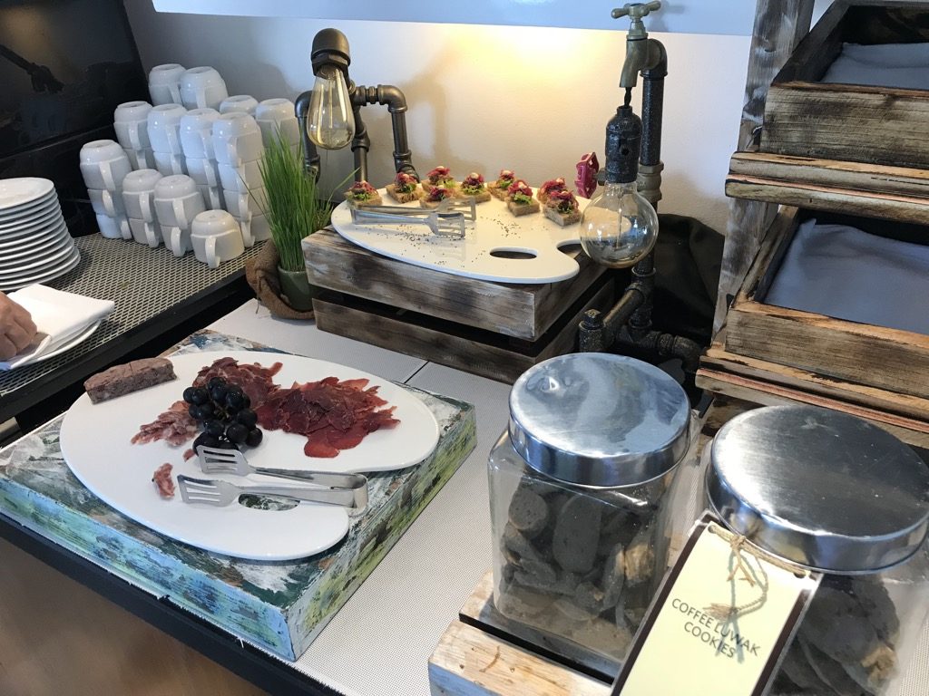 Schade war, dass die Lounge zum Afternoon Tea und zur Happy Hour definitiv zu wenig Speisen aufgestellt hatte. Wir haben ganze fünf Anläufe gebraucht, um uns zwei bis drei Kleinigkeiten vom Buffet zu holen. Zu den „Essenszeiten“ war die Lounge total überlaufen und das Buffet wurde im Minutentakt geplündert. So etwas Extremes haben wir in einer Hiltonlounge noch nicht erlebt. Trotzdem war das Personal stets freundlich und bemüht so schnell wie möglich das Buffet aufzufüllen.